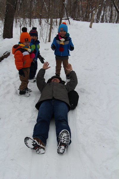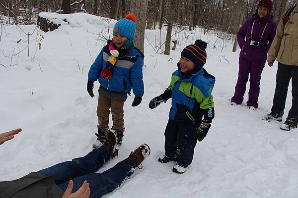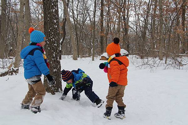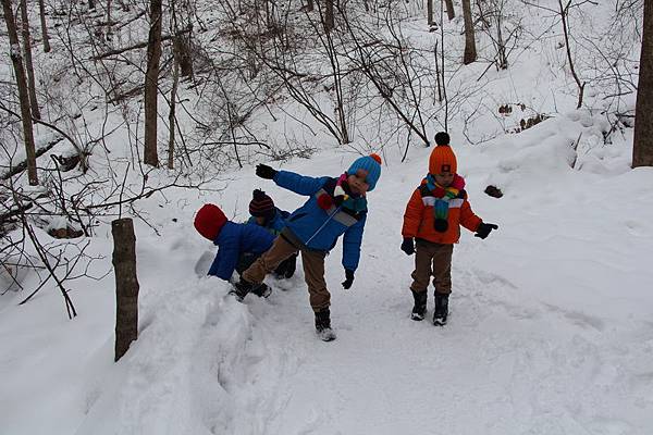 好動的小朋友實在很難入鏡,大夥粉粉在一旁玩起雪來
