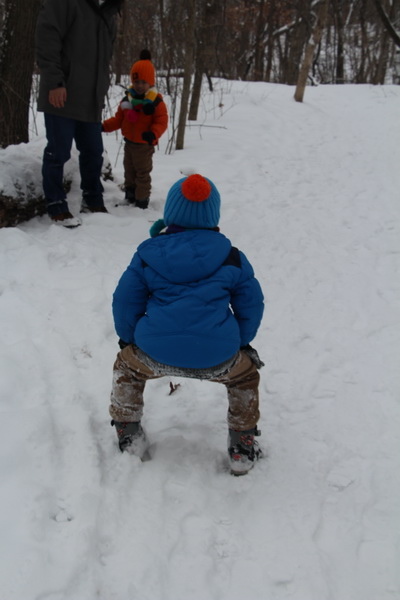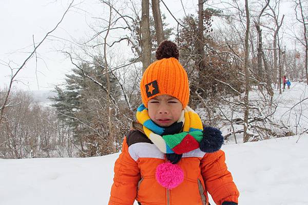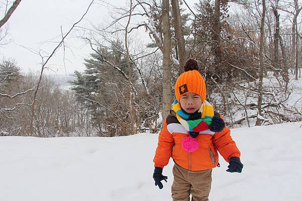被抱了好久都不肯下來走路的下兔,所幸後來小兔對於這片白茫茫的雪路有比較熟悉了,也在我的鼓勵引導下願意下來走一走