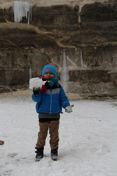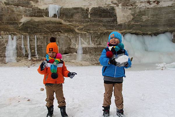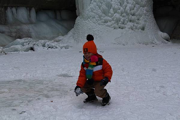 剛開始我要小牛去摸看看冰瀑布,小牛還跟我說他有點害怕