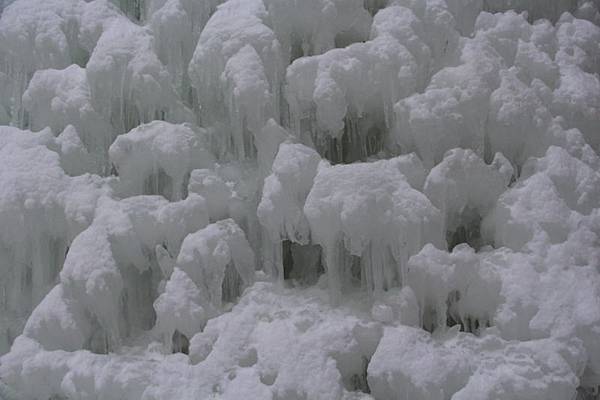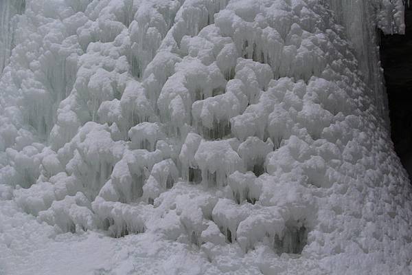 這冰瀑布上的的垂墜感所形成像雪花又像冰柱的堆疊冰體,有一種無法形容的魔力,沒有親眼目睹,再多的讚嘆都只能形容於它的萬一