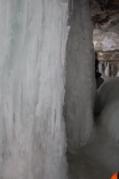 當我們再走進一窺究竟時,才發現裡面更是別有洞天,因為冰瀑布就在這裡了