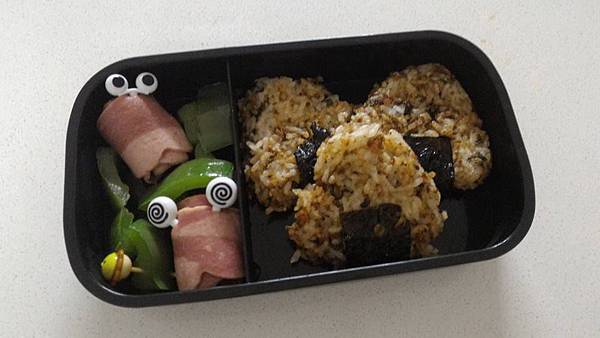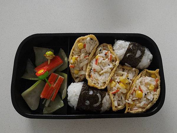 而且我也不會準備葉菜類或有強烈味道的中式食物在餐盒裡,白飯糰內為了顧及營養和美味也都有包東西在裏頭的